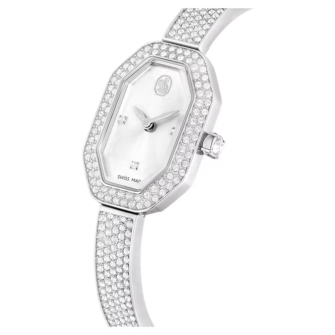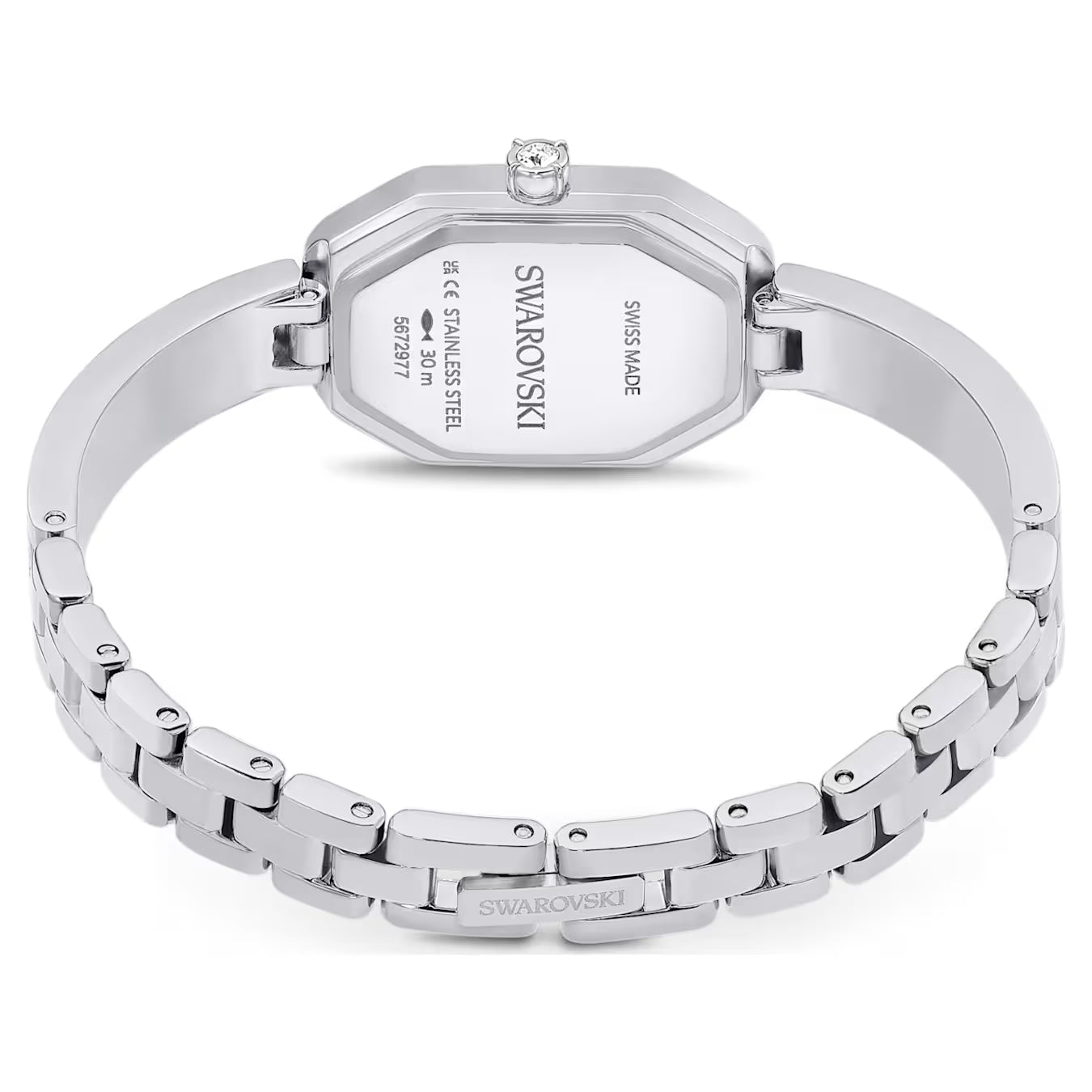 Realizzato nell’iconica forma ottagonale di Swarovski, questo esclusivo orologio con bangle Dextera è stato disegnato per il massimo glamour. La cassa in acciaio inossidabile misura 20 mm x 30,5 mm ed è impreziosita da un pavé di 92 cristalli sulla lunetta. Questo crea un setting perfetto per il quadrante con motivo sunray, che presenta un logo cigno posizionato alle ore 12 e tre indici in cristallo. Oltre ad un singolo cristallo scintillante incastonato sulla corona, l’orologio si arricchisce di 194 cristalli montati lungo il bracciale regolabile, per un tocco di eccezionale bellezza ad ogni ora. Questo orologio Swiss Made è resistente all’acqua fino a 30 m e unisce una gioiosa stravaganza al caratteristico savoir-faire Swarovski.