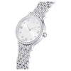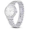 Impreziosito da 232 singoli cristalli, questo scintillante orologio Imber è la massima espressione di intramontabile eleganza firmata Swarovski. Il design da 31 mm in acciaio inossidabile presenta una lunetta con pavé e 52 cristalli Cry montati a castone, mentre un ulteriore cristallo è posizionato all’interno della corona. Sul quadrante con motivo sunray, 11 cristalli di piccole e grandi dimensioni segnano le ore, insieme al logo cigno a ore 12. Intorno al polso, la caratteristica più distintiva dell’orologio è il bracciale regolabile a sette maglie, con 168 cristalli taglio Round splendidamente incastonati. Questo orologio Swiss Made è resistente all’acqua fino a 50 metri e si abbina perfettamente alla selezione di gioielli Imber di Swarovski.