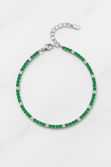 💚 Bracciale Tennis in Argento 925 con Zirconi Verdi e Bianchi