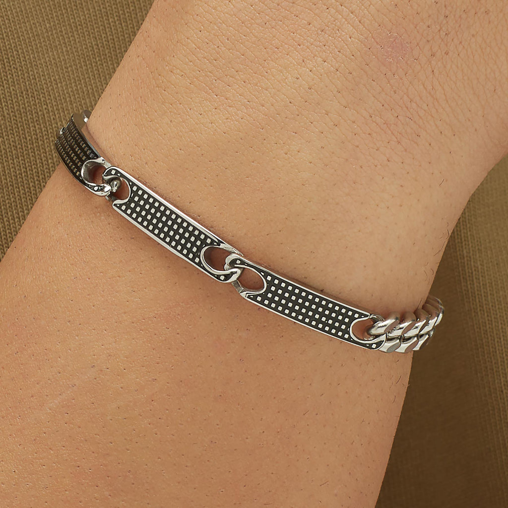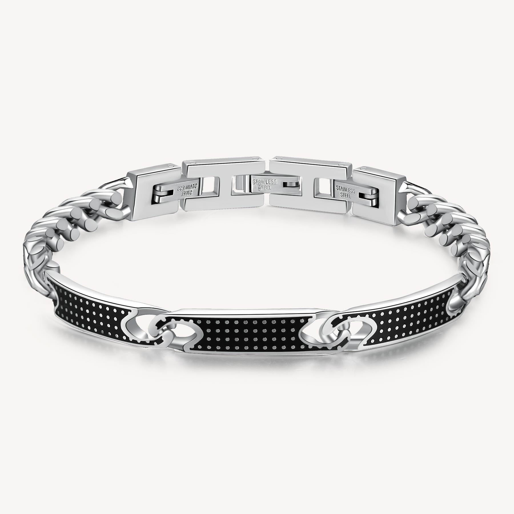 Bracciale catena grumetta in acciaio 316L e smalto nero.