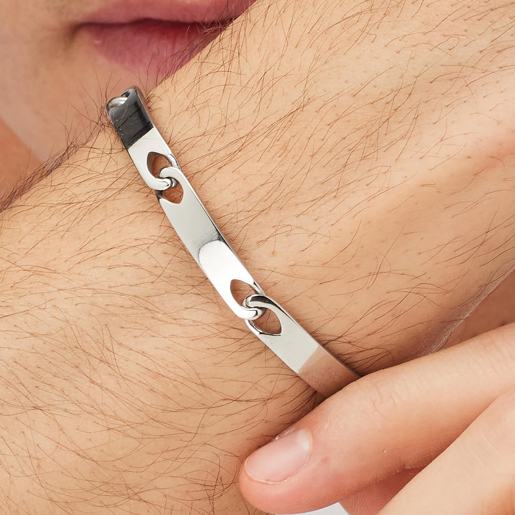 Bracciale del brand Brosway della collezione Bullet in acciaio 316L. Il gioiello è lucido e sabbiato. La referenza è:BUL59
