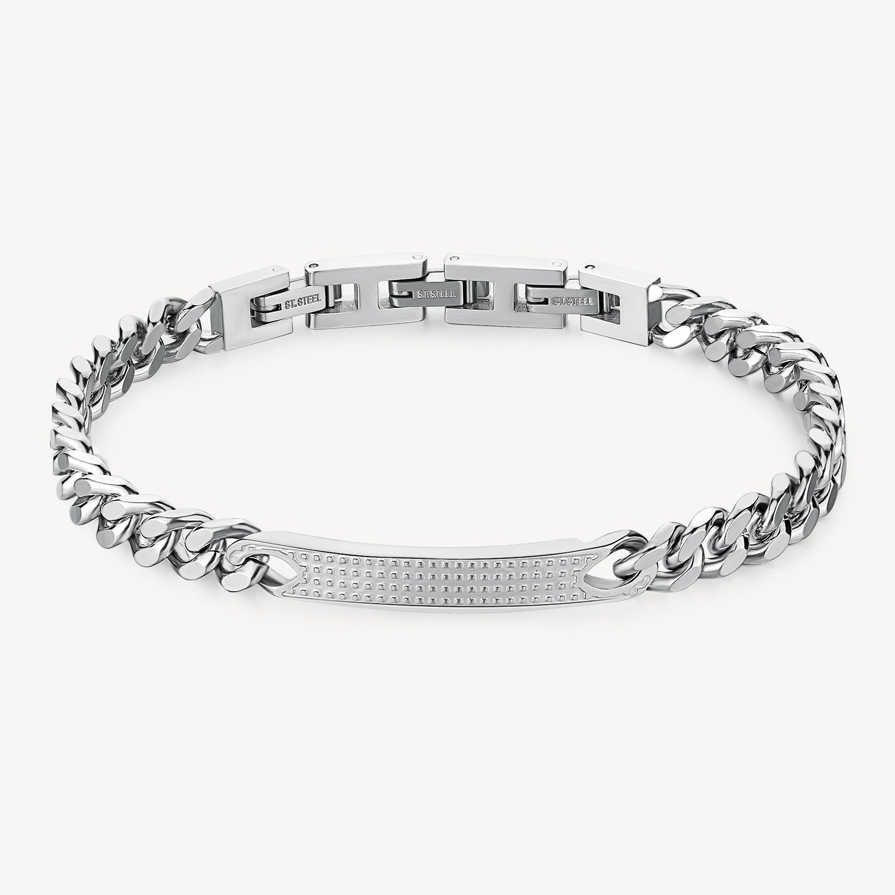 Bracciale catena grumetta in acciaio 316L lucido e sabbiato.