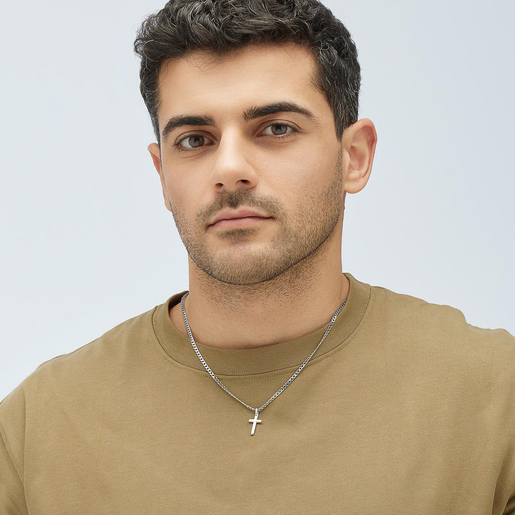 Collana da uomo di Brosway della collezione ink. Collana ink in acciaio 316l, con pendente croce. Lunghezza: 500 mm. Peso: 8,9 g. La referenza è bik10