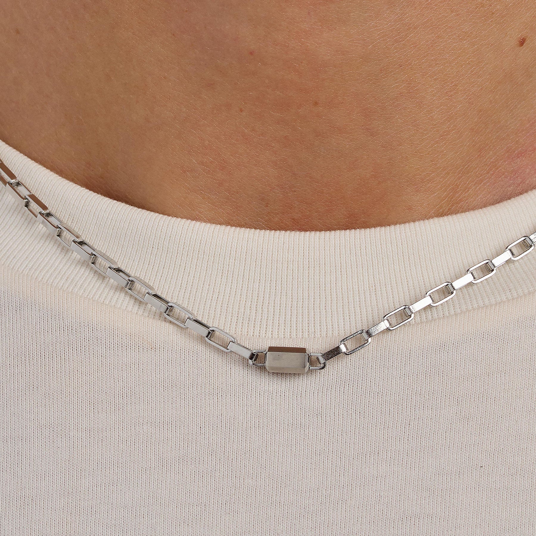 Collana catena girocollo in acciaio 316L lucido e satinato.