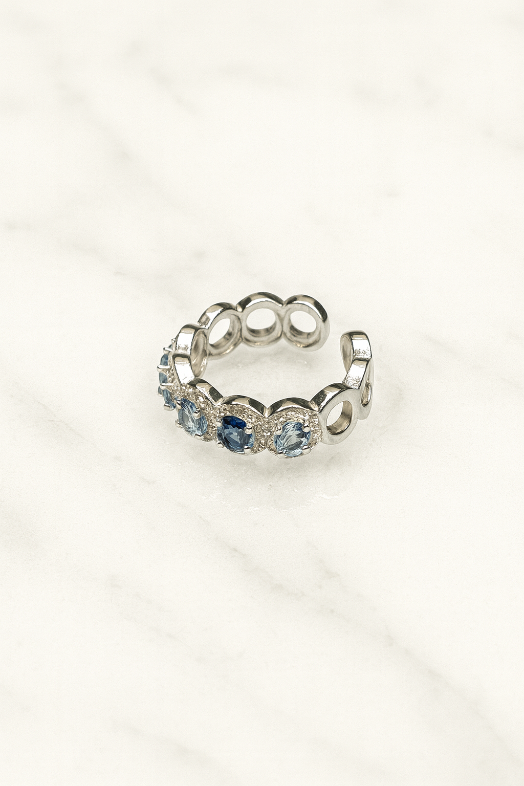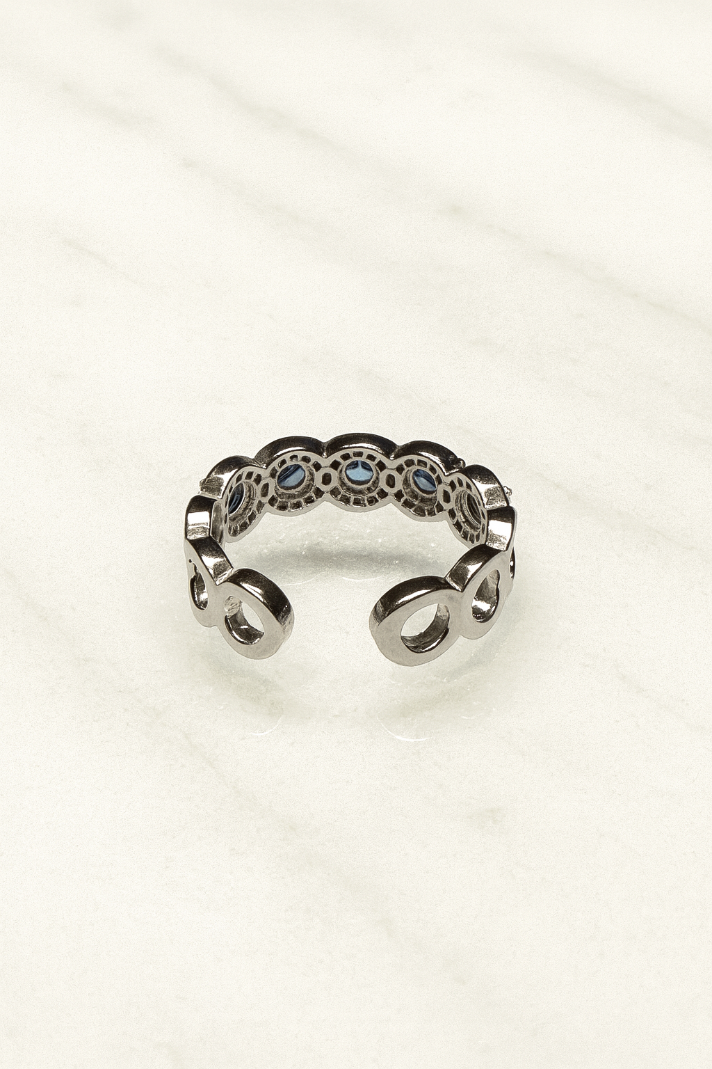 Il suo design regolabile lo rende perfetto per ogni mano, adattandosi con eleganza e comfort senza bisogno di misure precise. È un anello che si distingue per la sua personalità contemporanea, ideale per chi ama i dettagli raffinati ma non rinuncia a un tocco di originalità.