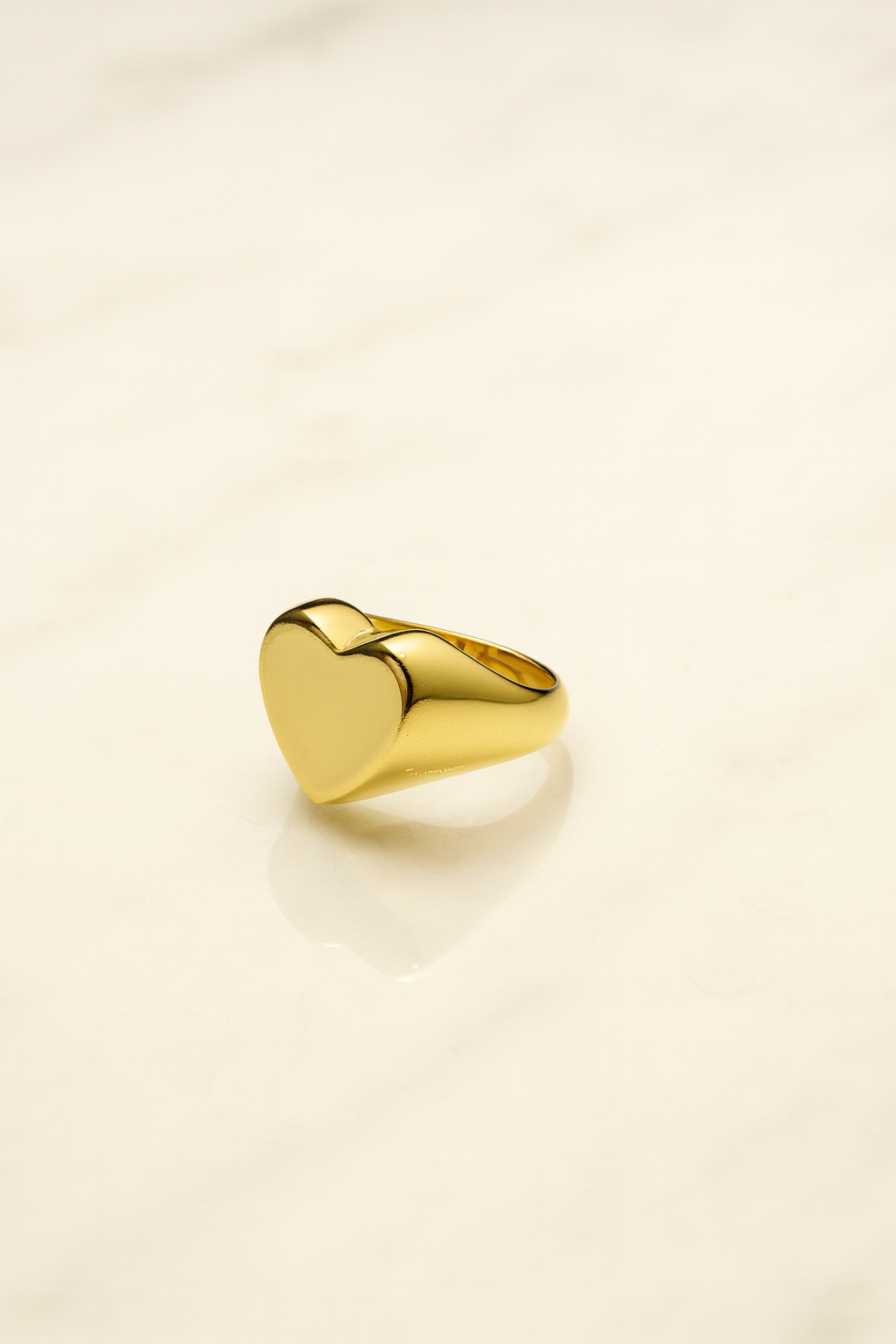 Realizzato in argento 925 di alta qualità con una raffinata placcatura dorata, questo anello unisce la tradizione artigianale a un design contemporaneo. Il cuore levigato, dalle linee morbide e pulite, riflette la luce con eleganza, rendendolo ideale da indossare ogni giorno o da regalare come simbolo d’amore autentico.