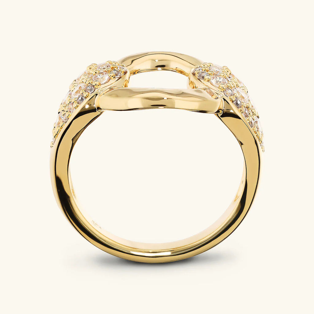 L'Anello a Fascia con Maglia Martellata e Pavé di Cubic Zirconia è il gioiello perfetto per chi cerca un accessorio che unisce luminosità e stile, con una forte personalità e un design ricercato.