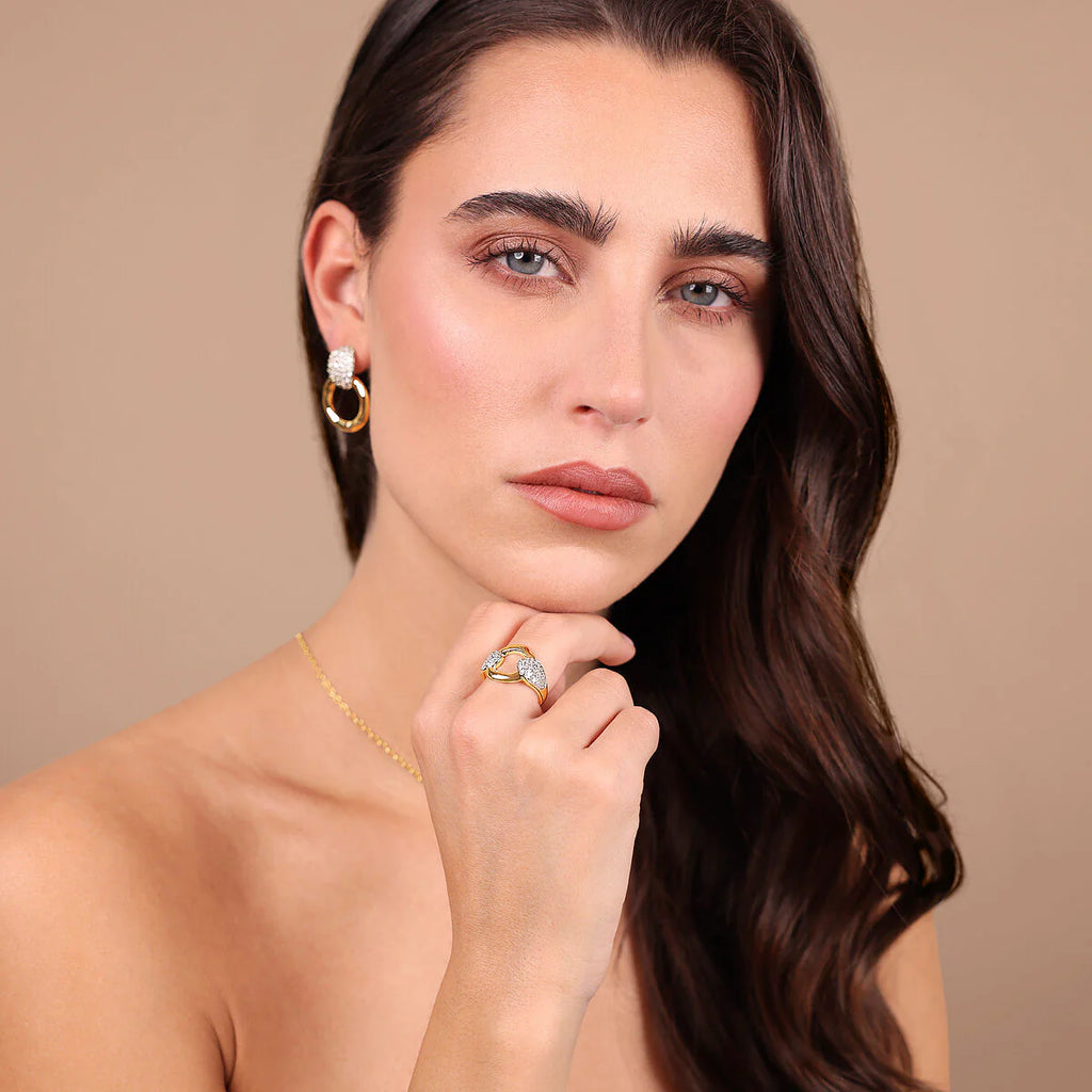 Versatile e luminoso, l'Anello a Fascia con Maglia Martellata e Pavé di Cubic Zirconia si adatta a qualsiasi stile. Può essere abbinato a un abito elegante per una serata speciale, o a un look più casual per aggiungere un tocco di classe e luminosità.