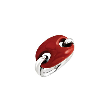 Anello Capriness maglia marina in argento e bioresina color corallo scolpita a mano