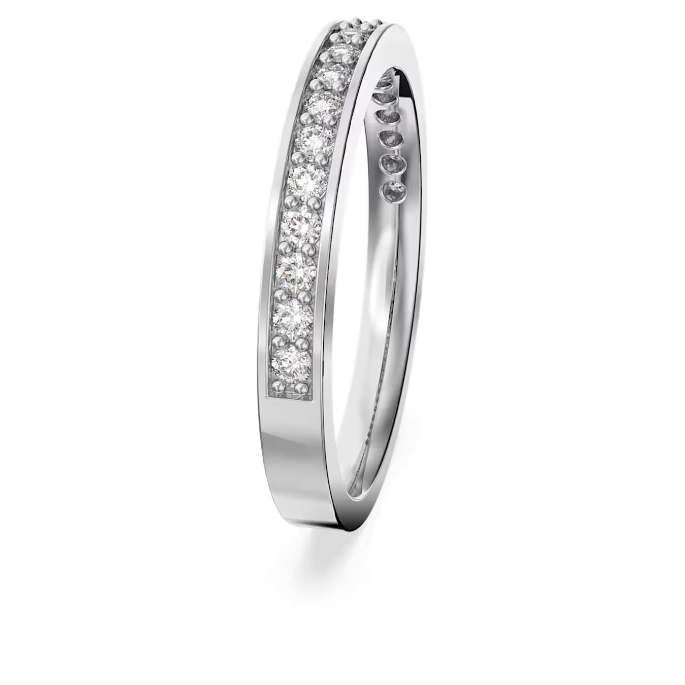 Un accessorio essenziale per qualsiasi portagioielli. Con una silhouette sottile e un semicerchio di pietre tagliate con precisione, questo delicato anello placcato in rodio è raffinato e facile da indossare. Abbinalo ad altri accessori nei toni dell'argento o combina vari tipi di metalli per un look più particolare.