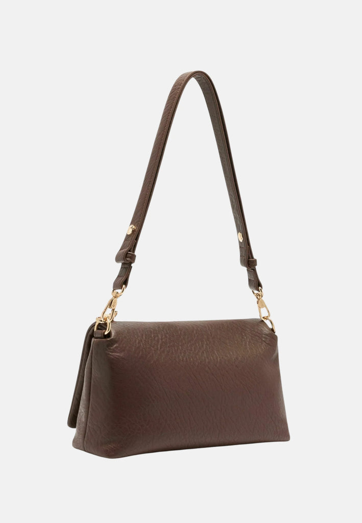Questo modello si caratterizza per la sua doppia portabilità: la tracolla regolabile e removibile consente di indossarla comodamente crossbody o a spalla, mentre il manico con catenina, anch’esso removibile, aggiunge un tocco glamour e rende la borsa adatta anche ad occasioni eleganti. La chiusura centrale con clip magnetica garantisce praticità e sicurezza, mentre l’interno foderato con tre tasche multiuso permette di mantenere sempre in ordine i tuoi oggetti personali.