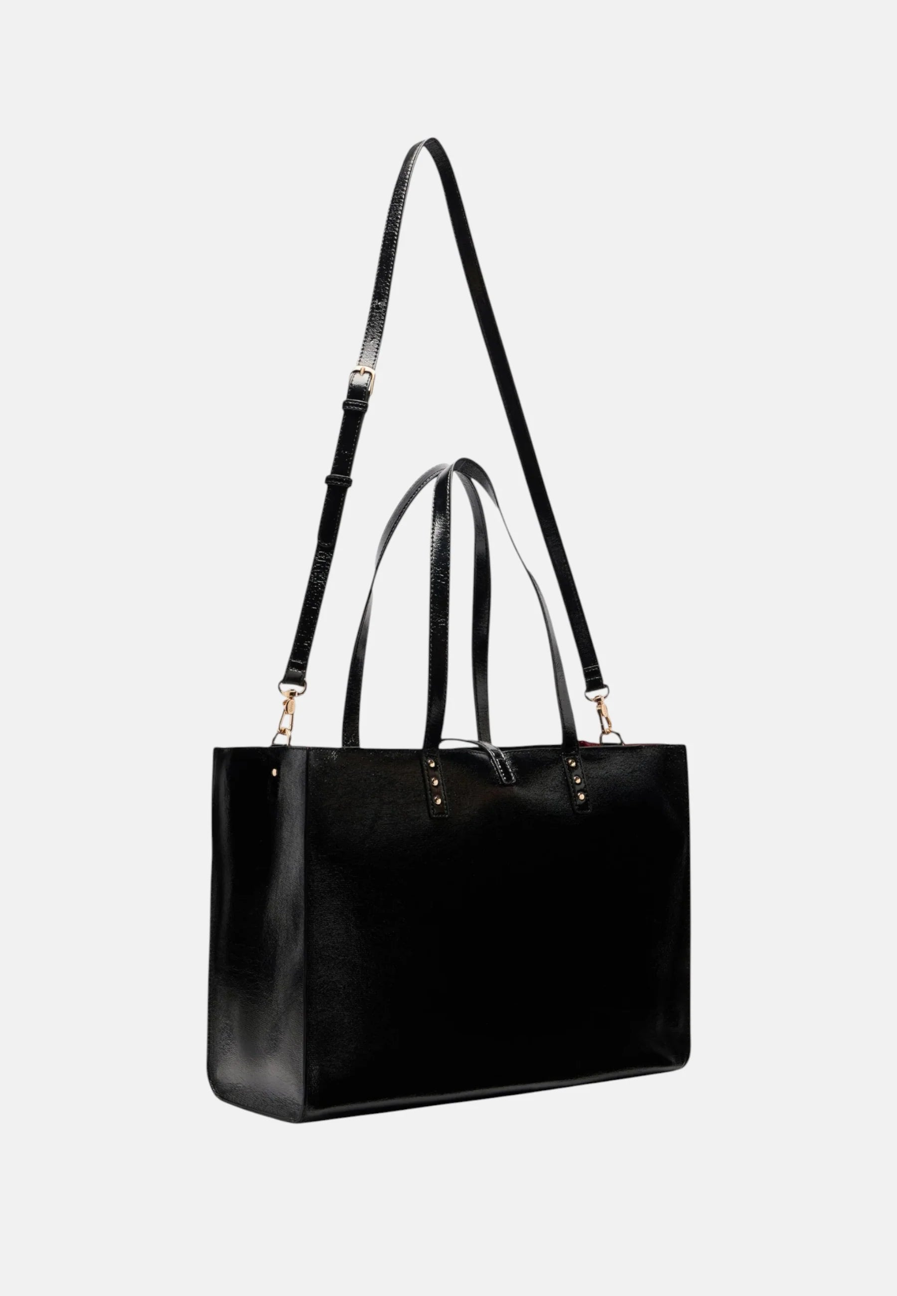 Il formato ridotto ma funzionale la rende ideale per accompagnarti in serate speciali, eventi o uscite quotidiane in cui vuoi avere con te solo l’essenziale senza rinunciare al glamour. I doppi manici offrono una portabilità pratica a mano, mentre la tracolla regolabile e removibile aggiunge versatilità, permettendo di indossarla comodamente anche a spalla o crossbody.
