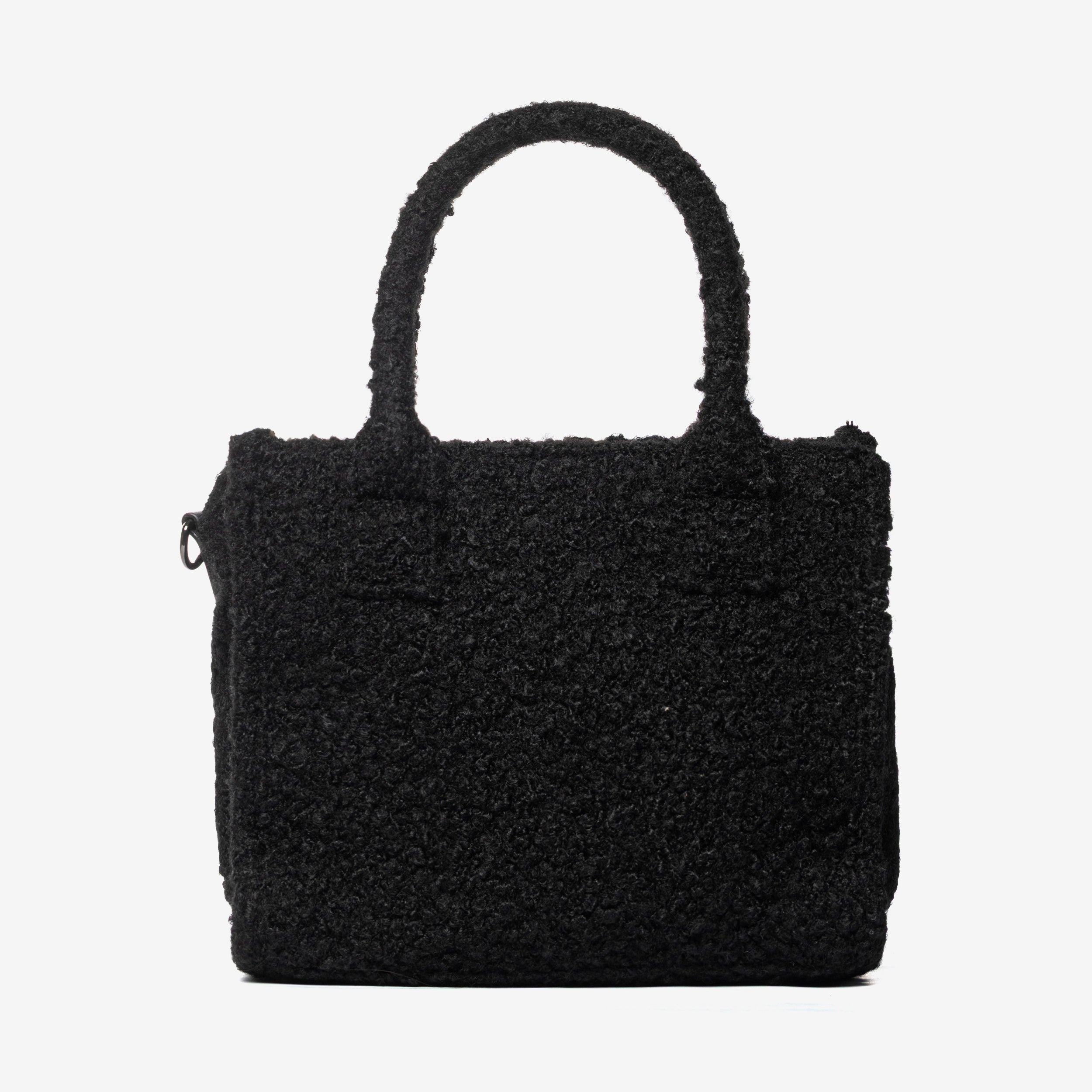 Compatta ma funzionale, la borsa è perfetta per contenere l’essenziale: smartphone, portafoglio, chiavi, make-up e piccoli oggetti. Il suo stile sobrio ma ricercato la rende ideale sia per un look da giorno che per uscite più casual. Il materiale esterno effetto lana è piacevole al tatto e regala un mood cozy ma moderno, perfetto per chi desidera un’alternativa elegante alla classica tote.