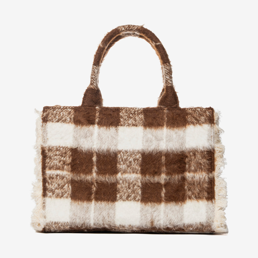 La Borsa Marc Ellis Cocoa BUBYCHECKM-COC è pensata per chi ama distinguersi con stile, senza rinunciare alla praticità. La fantasia a quadri in delicati toni del marrone cioccolato e panna evoca atmosfere avvolgenti e sofisticate, rendendola perfetta per completare outfit autunnali e invernali. I dettagli sfrangiati sui bordi e il logo ricamato in rilievo esaltano il carattere unico di questo modello, rendendolo un vero e proprio statement di moda.