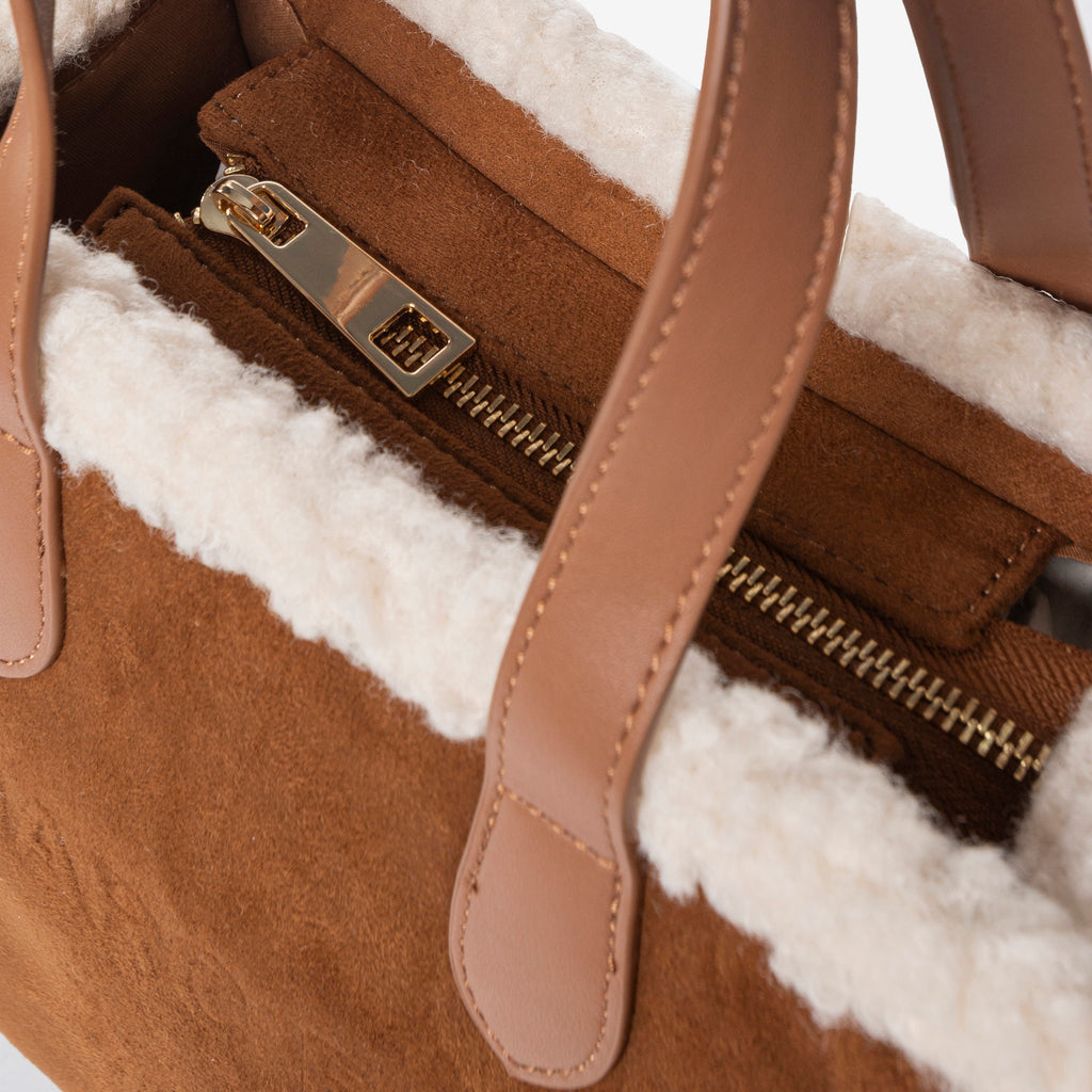 Se cerchi una borsa in shearling che abbini estetica e praticità, questo modello è la scelta giusta. La texture morbida, il contrasto cromatico e la cura dei dettagli ne fanno un accessorio unico e raffinato. Ideale da indossare con cappotti, maglioni oversize o look più casual, è il tocco finale perfetto per ogni outfit invernale.