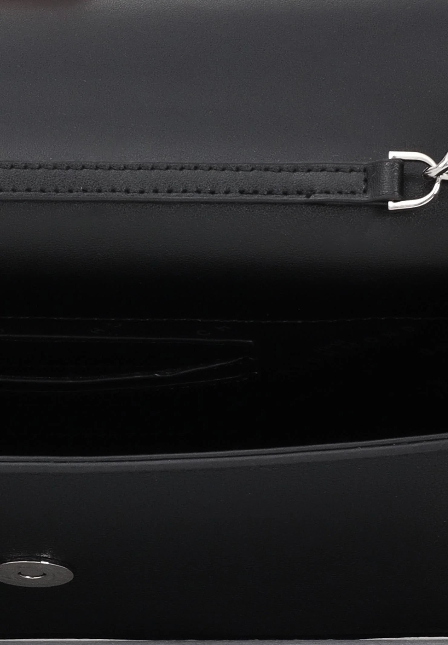 Il design minimal ma deciso è completato da una tracolla in catena argentata, che aggiunge un tocco moderno e grintoso, rendendo la borsa versatile e adatta a diversi stili. Può essere indossata comodamente a spalla o crossbody, a seconda delle esigenze, regalando sempre un look contemporaneo e ricercato. La chiusura con bottone magnetico assicura praticità e sicurezza, mentre l’interno foderato è progettato per contenere gli oggetti essenziali in modo ordinato e funzionale. Le dimensioni contenute, 22 x 5 x 13,5 cm, la rendono ideale come borsa da sera o come accessorio chic da giorno.