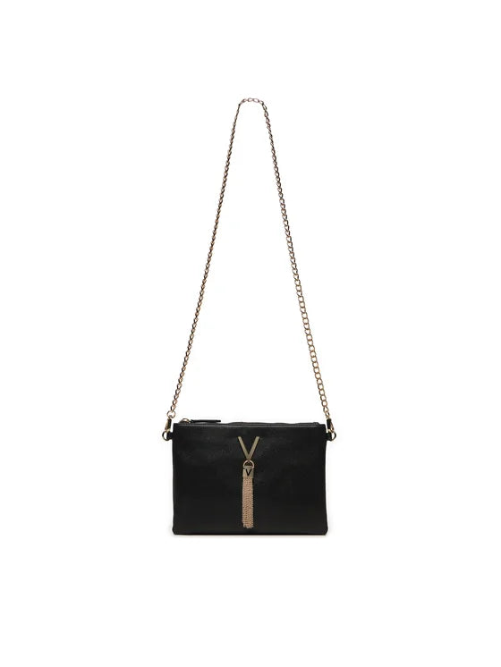 Grazie alla sua linea pulita e al logo frontale firmato Valentino, questo modello unisce con equilibrio funzionalità e design iconico. È pensata per la donna che vuole un accessorio riconoscibile, ma discreto, da portare con sé ogni giorno o in occasioni più chic. La finitura in nero e oro si abbina con facilità a ogni stile, dal casual al formale, garantendo sempre un risultato impeccabile.