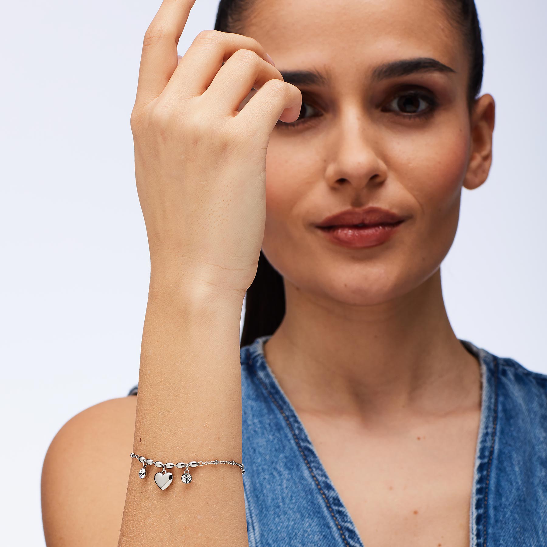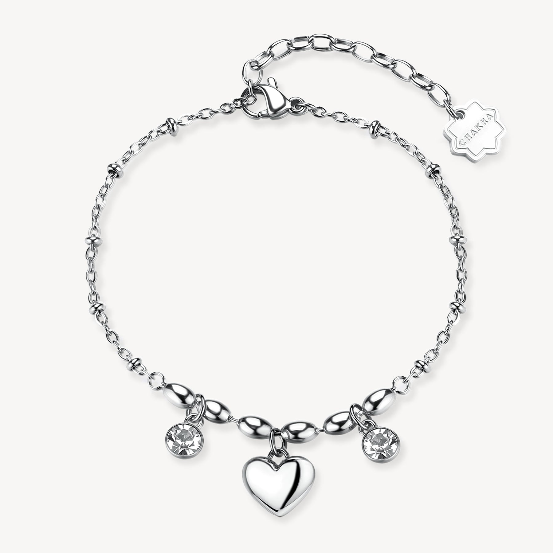 Bracciale in acciaio 316L e pendenti con cuore e cristalli.
