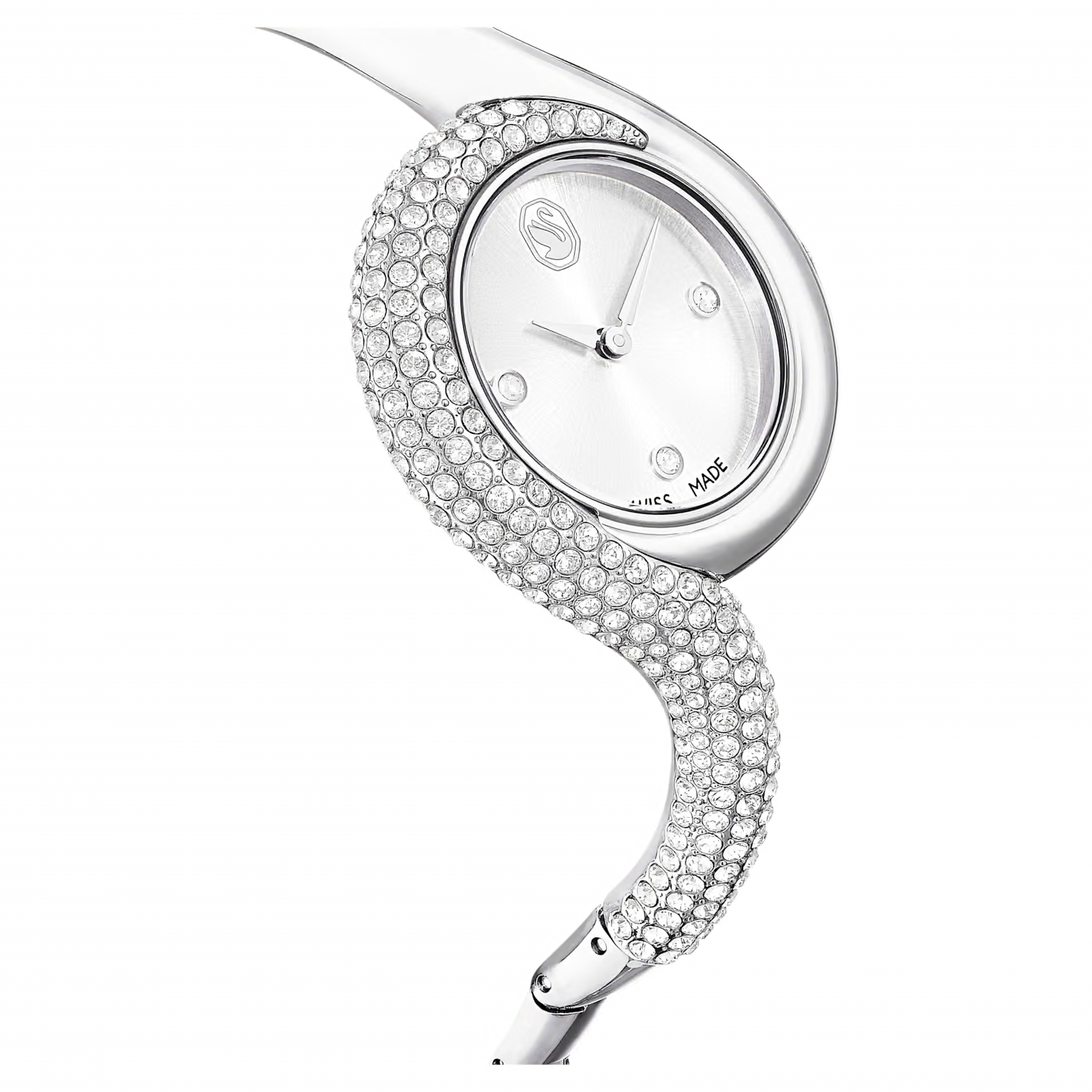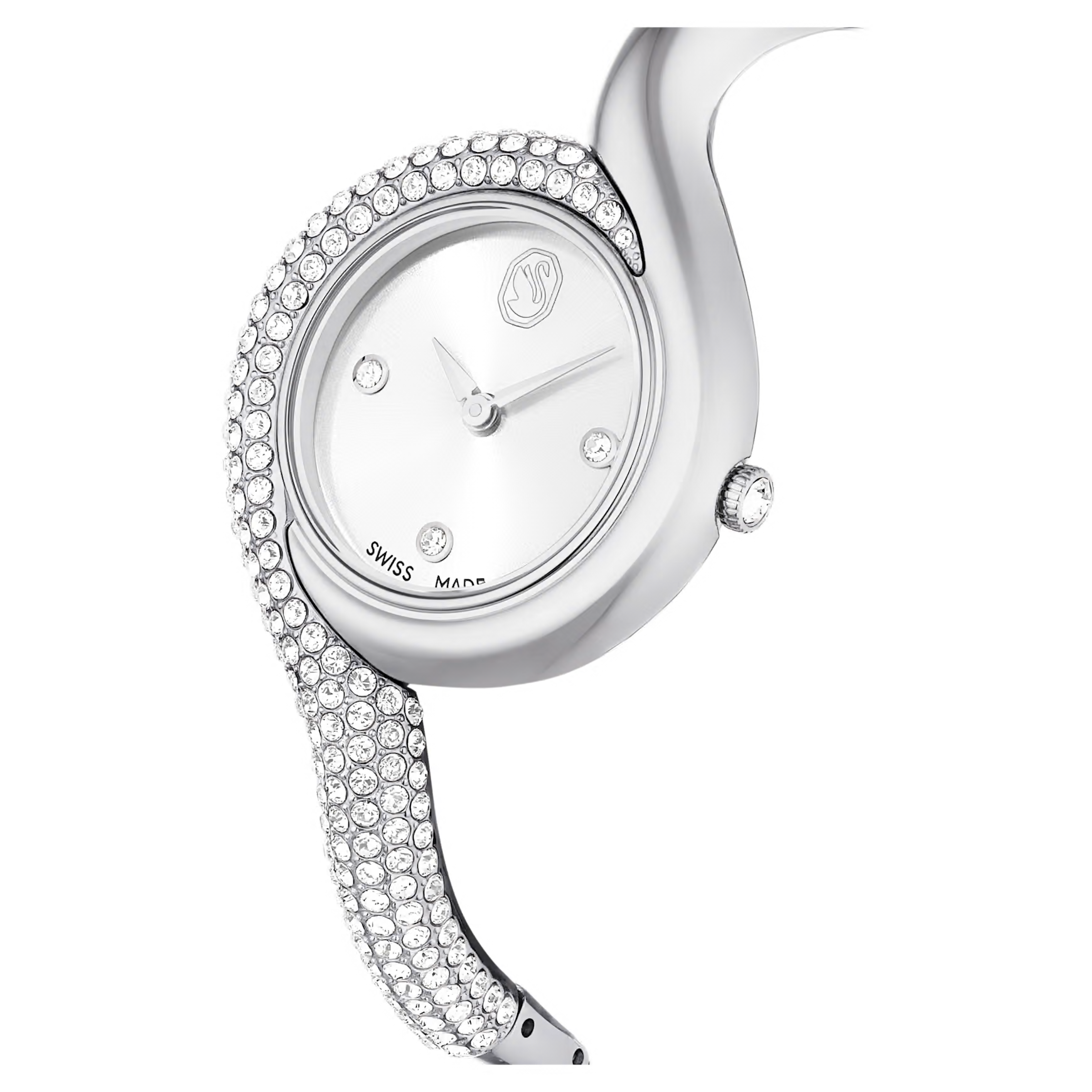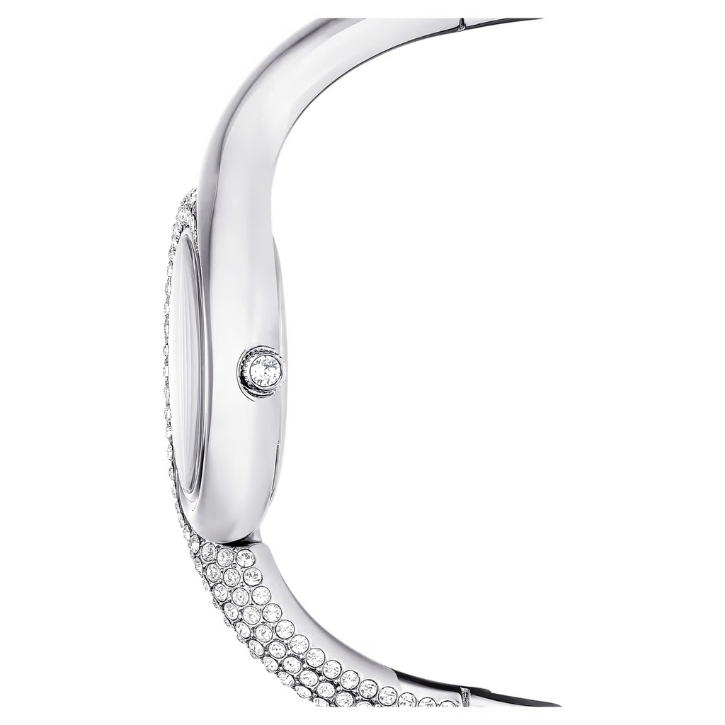 Questo accattivante orologio Dextera trae ispirazione dagli orologi classici di epoca vintage. Il design da 29 mm in acciaio inossidabile è impreziosito in modo creativo da un pavé di cristalli Cry su metà della lunetta e metà del bracciale. Il quadrante minimalista presenta un effetto con motivo sunray ed è accentuato solo da tre indici delle ore in cristallo e dal logo cigno a ore 12. Per la creazione di questo orologio sono stati utilizzati 203 cristalli, incluso il singolo cristallo incastonato nella corona. Questo orologio Swiss Made è resistente all’acqua fino a 50 metri ed è una pura espressione della raffinatezza di Swarovski.
